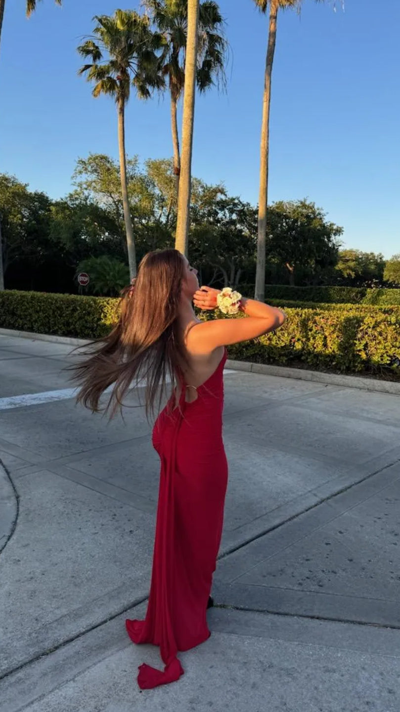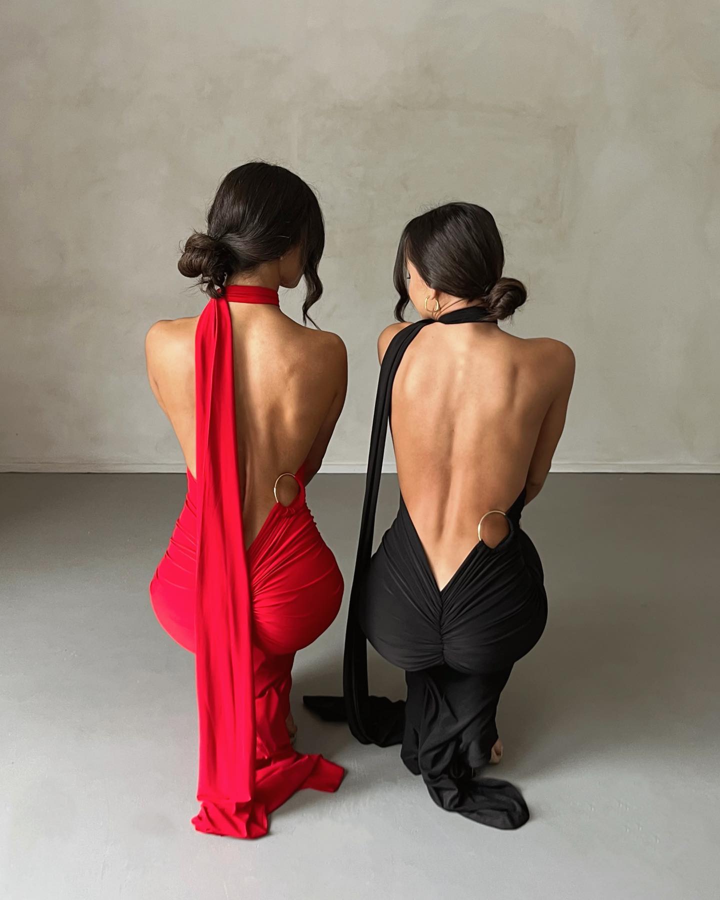 Backless and body-hugging in all the right places—this dress brings the drama with grace.
